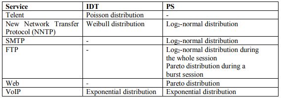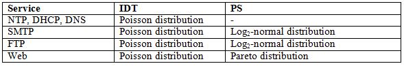 Table 3. Theoretical traffic model for generating IDT and PS for each service
