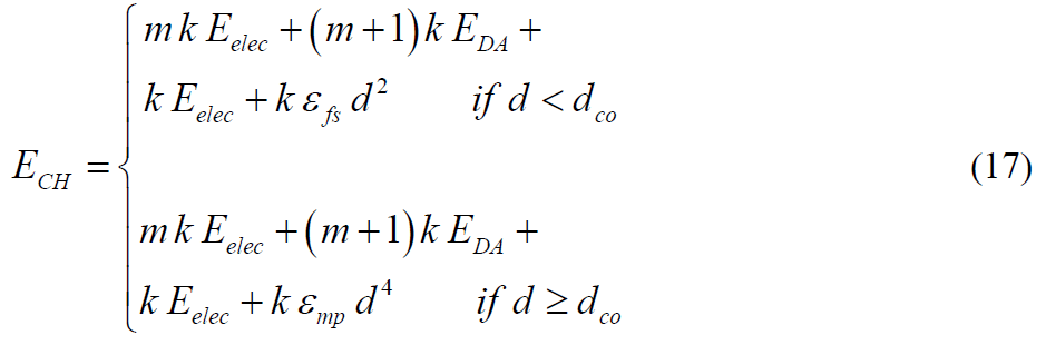 Where m is the number of cluster members, EDA is the energy cost in aggregating the received data, and d is the distance between the CH and the BS or the relay.