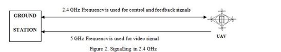 Some UAVs swap these two frequency channels to transmit their control and data signals. In this type of design, the 5 GHz frequency is used to send control and feedback signals, and the data is transmitted over the 2.4 GHz frequency. DJI has some UAV models (e.g. Phantom 2 Vision and Vision +) that use this convention. Figure 3 shows this type of communication arrangement. Both types of communication systems have their own advantages as well as disadvantages. In this paper, we discuss the signaling method used in AR 2.0 drones and modify it to design the signaling for LoD networks.