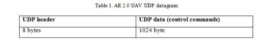 As we discussed in the previous section, once a controller is bounded with a UAV, it sends control signals continuously to the onboard UAV system. These control signals are carried in UDP packets as we saw earlier in section 2. We first study the UDP packet of AR 2.0 UAV and then, consider how it can be adapted for signaling in LoDs when a common control packet and a common feedback packet is used for all UAVs in a branch. AR 2.0 UAVs use various control commands to send the control signals to the onboard UAV system. These control commands are application data that is generated by the controller (a mobile app or a computer program). These application data are passed to the transport layer and a UDP control packet datagram is created. A UDP datagram has two parts, an 8-byte header and a 1024 bytes payload. The UDP datagram of an AR 2.0 UAV is presented in Table 1. The AR 2.0 development guide provides a list of mostly used control commands for AR 2.0 UAVs.