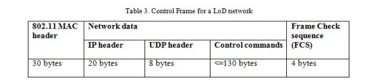 We can see from Table 2, the maximum size of the payload required for the UDP data for one control command of a AR 2.0 UAV cannot be more than 41 bytes. However, more than one command can be placed in a UDP packet. We used Wireshark to study the control commands of AR 2.0 UAVs. Wireshark traces showed there is a maximum of three control commands in a single UDP packet. Even if all these control commands are sent together, we require only 130 bytes of payload, and therefore, they can fit into a single UDP packet. These control commands are transmitted in a frame from the ground station to the AR 2.0 UAV. Wireshark showed that a control frame has 8 bytes of UDP header, 20 bytes of IP header and 14 bytes of Ethernet header. We investigated and found that the Wireshark Wi-Fi frame capturing does not work well with Windows and it gives incorrect Ethernet header details [8]. We examined Wi-Fi frames in Wireshark with Linux to check the Ethernet header. The Wireshark captured frames in Linux give the correct Ethernet header. We use standard Wi-Fi 802.11 MAC frame format for the AR 2.0 UAV control frame. Table 3 shows the maximum size of the control frame for AR 2.0 UAV which has 192 bytes. The ground station usually sends 30 control commands per second to the UAV as we verified using Wireshark.