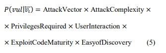 The probability of occurrence of a vulnerability 𝑣𝑢𝑙𝑗 event presented in Formula (2) depends on the total probability of exploitation of attackvectors 𝑉⃖ presented in Formula (4).