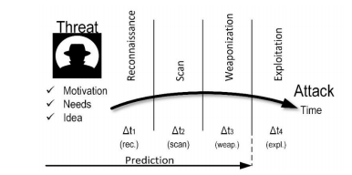 Each threat is preconditioned by certain motivation, budget and knowledge level. The speed of transition from the previous stage to the next one will depend on these parameters. To predict an attack, one must check the following attack stages: Reconnaissance 2.4.1, Scanning 2.4.2, Weaponization 2.4.3. The subsequent stages of attacks are viewed as the stages that do not need to be predicted. One only has to ensure an effective response to the information security incident which took place.