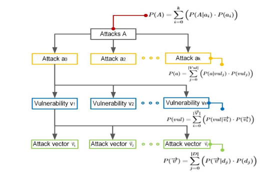 Let us analyze the lower level to determine the probability of an attack 𝑎 through exploiting vulnerabilities 𝑉𝑢𝑙.