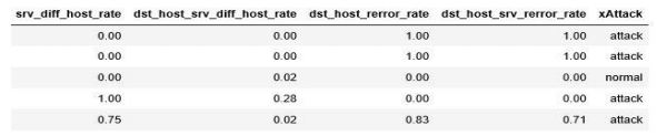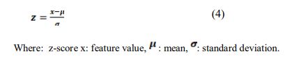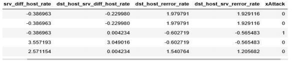 We display first five rows in train data As shown in Table (5) we notice that some features are umerical and the others categorical also the features have values differ a lot from each other so we have to convert all categorical features to numerical and scale down all data in the same range, the features will be scaled so that they will have the properties of a standard normal distribution with μ=0 and σ =1 to facilitate classification step and obtain precise results [23].