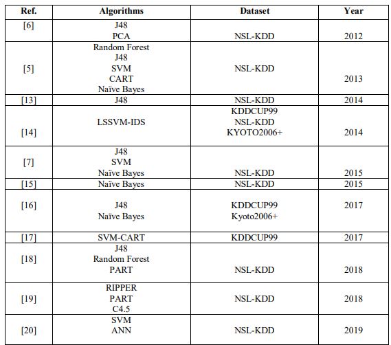 Table 1. Overview of previous machine learning techniques for intrusion detection