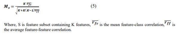Correlation is considered a popular and effective technique for choosing the most related features in any dataset. It describes strength of association between features [22]. The following equation described the evaluation function.