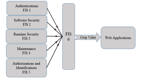 While multiple Fuzzy Logic applications in the related area simply employ fuzzy rules with the same weight as 1 when processing the variables, we put emphasis on considering each sub-factor as a completely specific influencer in Web Application security. As shown in Figure 4 the FIS for each security sub-factor of “Web Application” is designed separately in a backward manner to attain the parent node in each layer.