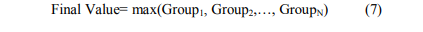 These rules are designed for the first group based on the COA methodology. The weights are shown at the end of each line of the rule. Decision making based on a single fuzzy set occurs through aggregation to combine fuzzy sets from if-then rules to a single fuzzy set. For that, we use the max-min technique (7) for aggregation and the final value is achieved as follow: