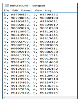 In this research, the collected data will be stored in text file format that allow future enhancement of the system by using MATLAB. Each user will have 3 different text files to store different data, which are: 1) .UNS –User’s Username Typing Data, 2) .UPS – User’s Password Typing Data, and 3) .SNS –User’s Standard Phrase Typing Data. All files will be stored in the same format that will use comma (“,”) as delimiter for each data. The format for the text file is shown as Eq. (1).