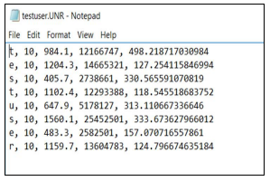 Figure 9 shows the template of the username for user “testuser”. Each keystroke consists of one line where it records the keystroke, key pressed time of the keystroke, keystroke, and key release time of the keystroke.
