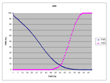 In order to get the threshold, several tests were conducted as a research to test the most suitable threshold value for this system by inputting the reference template which collected from the system into the MATLAB to perform the simulation. The testing will test all possible threshold values and will compute its False Acceptance Rate (FAR) and False Reject Rate (FRR). The result of the threshold identification is shown in Figure 11.