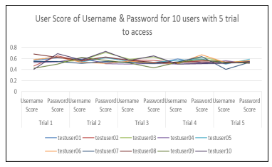 Table 2 shows that 10 sets of data collection of 10 users who have registered with the score when they are trying to access web-based system via the proposed Keystroke Dynamic system for verification. The score is captured and the graph is plotted as depicted in Figure 12.