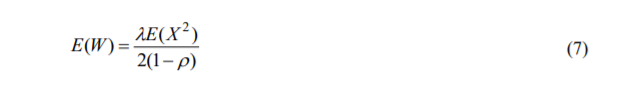 If λ is the arrival rate and X is an arbitrary variable representing service time of the M/G/1 model, the mean queue delay of the system is as follows: