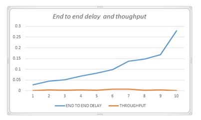 Table 2 shows EED from the simulation and throughput. From the table above, we can see, as the number of nodes increases, the average EED increases for all cases. Therefore, in dense network, there is high EED, therefore an increase in packet loss which in turn leads to low performance of the network. The EED is demonstrated in Figure 3 which shows a curve that rises where the number of nodes increases.