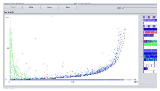 Figure 5 below shows a result obtained after running a simulation using Weka software, and it describes the relationship between time and packets received. From Figure 5, we can see that as time increases, the number of packets received also increases significantly. There is also a decrease of packers received as the time increases more and more, this is due to packet loss as they wait for free slots or during the transfer from one node to the other.