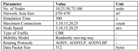 The node speed ranges from 5-25 m / s to investigate the effect of node speed on AODV, AODVLP, and AODVLBP performance. Other simulation variables are set aside as shown in Table 1 except the number of nodes sets to 10 nodes and the number of connections is set to 5 connections.