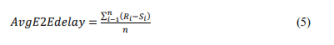 The average time delay parameter is the total time needed to pass the data packet successfully via the network from the source to the destination. The average data packet delay for the E2E can be determined using the following formula: