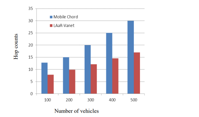 Figure 7. Lookup hop count: LAaR-Vanet versus mobile chord