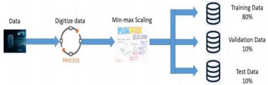 Pre-processing data: In Figure 1, we process the data (digitalization) from the NSL-KDD 2019 data set since it has some features including string data. Then, we divide this data set into three subsets which are Training; Validation; and Testing. After that, we need to bring data to a certain range to avoid an imbalance between features. Specifically, we use min-max scaling (sometimes called min-max normalization) which is calculated based on min, max value of training data [55]. Then, we have three data subsets as in Figure 1.