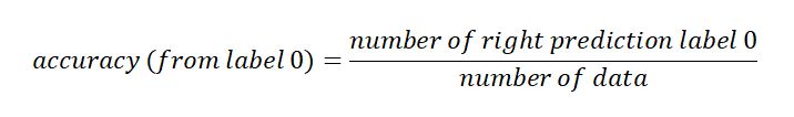 Finally, the accuracy level is 70%. Moreover, we obtain the accuracy levels of individual (Label 0) is 83.33%; accuracy(Label 1) is 0%; accuracy(Label 2) is 75%; and accuracy(Label 3) is 75% respectively. Accuracy on each label will affect general accuracy according to the amount of data that label occupies in the data set. Again, we can calculate the general accuracy by individual Label accuracy as follows: