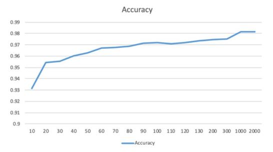 Figure 6. Accuracy level of different n_estimators of Random Forest