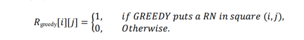 Let 𝑟𝑔𝑟𝑒𝑒𝑑𝑦 be the total number of RNs that our greedy algorithm suggests to be placed across the search space. It is clear that ∑ 𝑅𝑔𝑟𝑒𝑒𝑑𝑦 0≤𝑖<𝑚,0≤𝑗<𝑛 [𝑖][𝑗] = 𝑟𝑔𝑟𝑒𝑒𝑑𝑦.