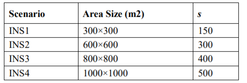 The evaluation of the proposed greedy-based PSO algorithm was carried out using an experimental WSN dataset representing varying RNP problem scenarios of fairly complex setups. The dataset contains four artificial WSN instances with randomly distributed stationary sensor nodes. The instances had deployment areas of square shapes with different dimensions and numbers of sensor nodes as illustrated in Table 3. We made sure that the proposed approach was tested under a varied set of RNP scenarios, from fairly small- to large-scale. We deemed it important to include the sufficient number of sensor nodes to cover the entire deployment area in each scenario. For all the sensor nodes and RNs in all the scenarios, w and d were set to 40 and 4m, respectively [44, 45].