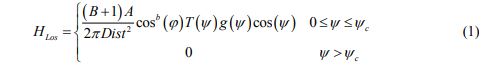 Where, b is the order of Lambertian emission; A is the detector area; distance between one vehicle to other vehicle is Dist ; optical band-pass filter of transmission is ) y(T ; concentrator gain is ) y(g , receiver’s field of view is cy ; angle of impedance is y and angle of irradiance is .j