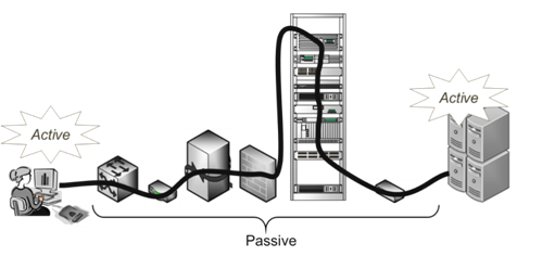 Although each of these is unique in its security approach, they all share seamless end-to-end encrypted communications in their architectures as shown in Figure 1.Entities in the enterprise may be active or passive. Passive entities include storage elements, routers, wireless access points, some firewalls, and other entities that do not themselves initiate or respond to web service or web application requests. Active entities are those entities that request or provide services according to ELS. Active entities include users, applications, and services. This is a basic conflict with current network defense models, which break this connection at one or more internal components, in effect making them active entities.