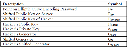 The additional point Pw involved in the computation of Ps foils MITM attacks. When a MITM attacker positions himself in between the user and server, he needs to replace Psw with his own Psw-hack which should be computed as Ps-hack – Pw for which he needs the user’s password. Without knowing the user’s password, if the attacker passes his own Ghack and Ps-hack, the user computes his ciphertext CM = {r Ghack, PM + r Ps} where Ps= Psw-hack + Pwand the hacker intercepts and tries to decrypt it as follows: