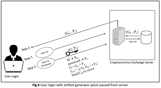 When a user tries to login to his account, the server retrieves the shifted public key of the account Psw-hash and passes it to the user. The user runs the same hash function on his password and computes the actual public key Ps=Psw-hash + Pw-hash for backward shifting and Ps=Psw-hash – Pw-hash for forward shifting.