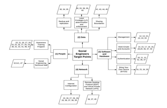 Next, the paper provides a description of each target point and the defense mechanisms against social engineering attacks targeting these target points.