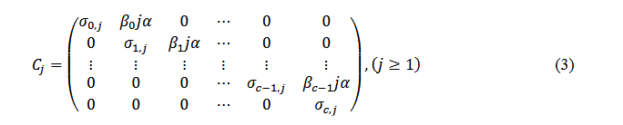 Let ππ,π = limπ‘ββ π(πΌ(π‘)=π,π½(π‘)=π), where ππ,π are the steady–state probabilities for the state (π,π). When the chains π ={πΌ(π‘),π½(π‘);π‘ β₯0}are represented through the state transition matrixes π΄π, π΅π, πΆπ (with theirdimension(π+1)Γ(π+1)) [9–13]: