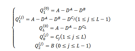 Let the probabilities (π,π) are defined by ππ,π = limπ‘β+βπ(πΌ(π‘)=π,π½(π‘)=π), and the level probabilities vectors π£π=(π0,π,π1,π,…,ππ,π)(1β€πβ€πΏ). The balance equations of the system are: