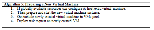 Step 6: If any cloudlet is not having Best-Effort category task for preempting then the scheduler find that a new virtual machine can start based on globally available resources which consisting of physical resources, if current VM threshold value meets based on algorithm no. 1 then, it automatically prepares and start’s a new virtual machine using predefined configuration to execute service request [Algorithm no. 5].
