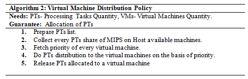Step 3: Virtual Machine’s Manager: VMM shares processing power to the virtual machine’s which are active on a host as per the first step of proposed virtual machine allocation policy. Each virtual machine shares CPU power based on the priority field [Algorithm no. 2].
