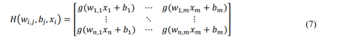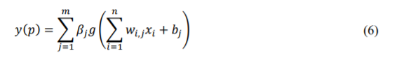 Here, π½π and π½π represents the weights between the hidden layer and the input layer, and the output layer and the hidden layer respectively. The hidden layer neuron threshold value ππ and its activation function π(. ). Weights of the same input layer (π€π,π ) and bias (ππ ) are assigned randomly. In the beginning, the network is initialized by allocating the input layer neuron number (π) and hidden layer neuron number (π), and the activation function (π(. )). Now, based on this information, by combining and rearranging the parameters known in equilibrium, the output layer becomes as in equation (8) [28].