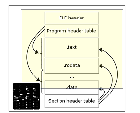 The ELF (Executable Link Format) is widely used in a host of IoT relevant configurations (Figure 2). For operating systems like Linux, Android, BSD, Solaris, and BEOS, the ELF executable consists generally of the header, program header table (text and data). The same structure describes formatted game files (PSP, Playstation 2–4, Dreamcast, Gamecube, and Wii), custom phone operating systems (Nokia, Samsung, Ericsson), and microcontrollers such as Atmel and Texas Instruments.