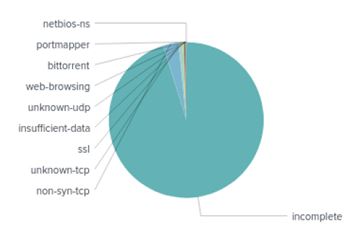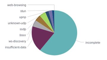 Tables 1 and 2 show the application breakdown of the traffic observed in SINET by the IOC in [1]. In both cases, incomplete, unknown-TCP, and unknown-UDP occupy the top positions. From this, it is clear that most of the traffic generated by the attacker is unidentifiable.