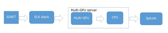 NII-SOCS, which stands for NII Security Operation Collaboration Services were founded by The National Institute of Informatics in Japan in 2016. NII-SOCS is launched with the Center for Cybersecurity Research and Development and the administrative officials of the Academic Infrastructure Division. Our center had developed a network security infrastructure to observe traffic and detect cyber attacks in SINET in Japan. SINET is a Japanese academic backbone network. SINET is responsible for handling the networking of more than 800 universities and research institutions. SINET manages a variety of research facilities in space science, seismology, high-energy physics, nuclear fusion, computing science. Currently, in 2021, SINET has over 2 million users. Our team of NII-SOCS has deployed a dataflow pipeline. The pipeline consists of PaloAlto-7080 firewall, ELK stack, Splunk, and NVidia Multi-GPU server [17].