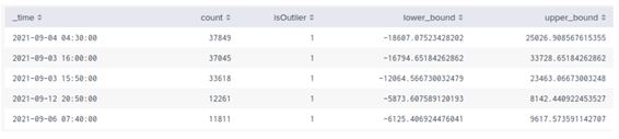 Figure 2. Output table of Splunk streamstats commands