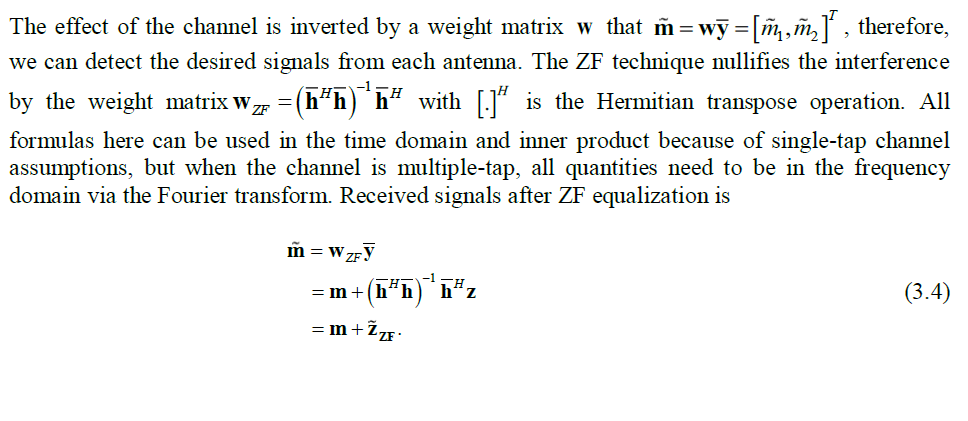 technique that nullifies the interference, zero-forcing method. From Figure 3, the received signal