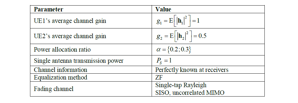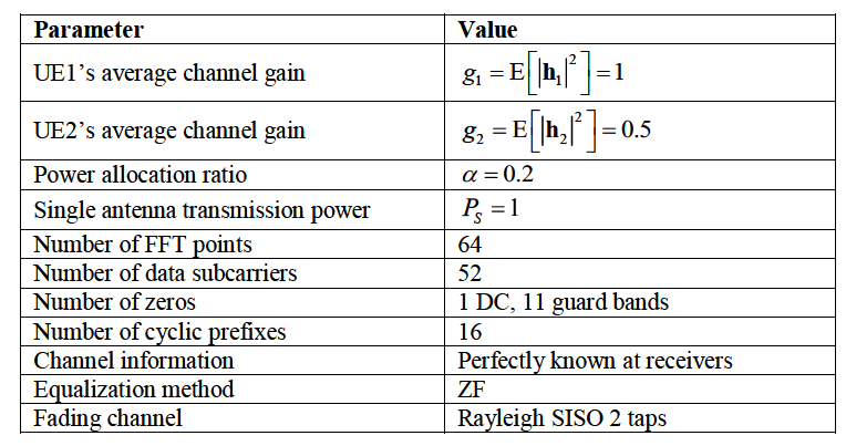 1) Closed-form BER expressions for NOMA in two-user scenario with quadrature phase shift keying(QPSK) modulation over quasi-static single-input single-output (SISO) Rayleigh fading channels are investigated.