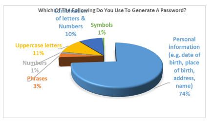 Employee carelessness can lead to hardware theft and, eventually, access to data stored on it. It is normal for people to lose devices as we have no control of human behaviour and thinking such as the desire to steal. The study tells us that over half (74%) of the passwords of their devices contain personal information. The chart also shows that only 1% of employees set their passwords to numbers such as “123456”. About 3% use phrases such as “password”. Few (11) use upper case and lower case or combine phrases and numbers such as “! 12345678@nam.” In this case, if a device is stolen and their credential are guessable, information is of value to an attacker may be exploited and be used to launch phasing, harassment-related attacks or other attacks such as DDoS. Therefore, threats and vulnerabilities can be avoided if employees respect to log out or lock their devices whenever they leave their desks.