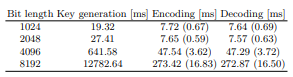Table 1. . Execution time required for the encoding/decoding in the Paillier cryptosystem. Two values in each cell show the mean and the sample standard deviation over 1000 runs, respectively.