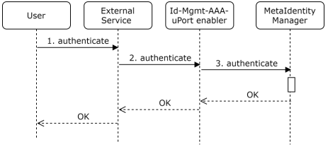As presented in Figure 1, in the scenario involving the external service (non-interactive with the Blockchain), the client (the user) interacts with the external service to authenticate (interaction 1). The service invokes the enabler to perform authentication (2). The public address of the user that signed the request (using the Hashed-Based Message Authentication Code – HMAC) is known to the blockchain infrastructure. The enabler contacts the MetaIdentity Manager (3) to verify the identity of the user.