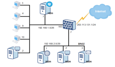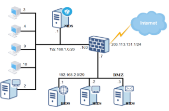 Figure 2. shows a business network diagram that combines both NIDS and HIDS. HIDS is installed on servers in the DMZ zone (Web, File, Mail) in this network to detect any illegal or unexpected access to these servers. NIDS is installed behind the firewall to monitor all traffic entering and exiting the network.