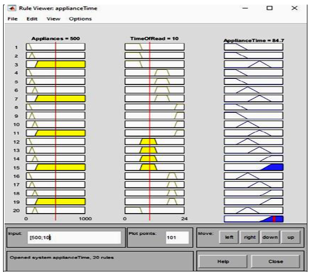 Figure 9.Output: the appliance energy is extreme and the time of reading is Peak (AM), then appliance time will be V.high