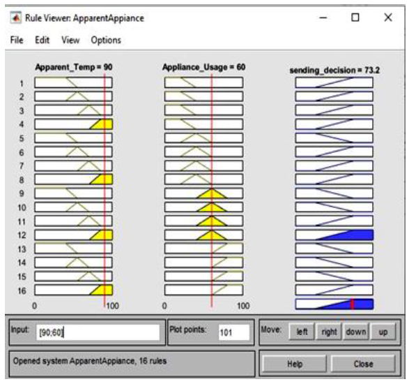 Figure 11.Output: if the indoor apparent temperature is medium and appliance usage time is high, then the sending decision will be sent